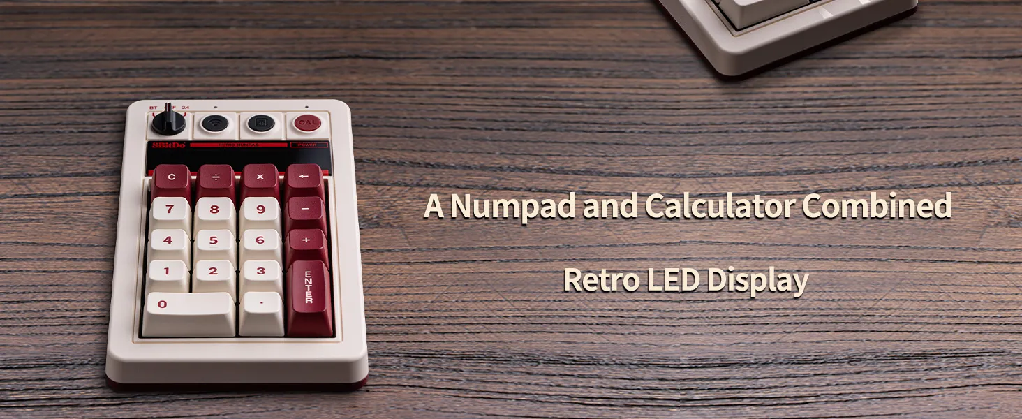 The 8BitDo Retro 18 Tri‑Mode Mechanical Numpad is a compact and versatile mechanical keypad designed to complement modern keyboards and enhance productivity. It features an 18‑key layout ideal for numeric input, gaming macros, or quick spreadsheet navigation. One of its standout features is tri‑mode connectivity , allowing users to connect via Bluetooth 5.0, 2.4 GHz wireless, or USB‑C wired mode , making it compatible with PCs, laptops, and other devices. For a tactile typing experience, the Retro 18 uses Kailh Box White V2 mechanical switches , providing responsive and clicky keystrokes. The hot‑swappable PCB allows users to replace switches without soldering, offering full customization options. Its top‑mount aluminum plate construction delivers durability and a solid typing feel, while N‑key rollover (NKRO) ensures every keypress is registered accurately, even during rapid sequences. Aesthetic and functional features include a seven‑segment LED numeric display , giving a retro calculator‑style visual for numeric input, and a dedicated calculator button for instant access to system calculators on supported devices. The numpad is powered by a 1000 mAh rechargeable battery , supporting up to 160 hours of wireless usage , making it ideal for extended work or gaming sessions. Overall, the Retro 18 combines mechanical precision, retro design, and flexible connectivity in a compact accessory that boosts productivity and style.